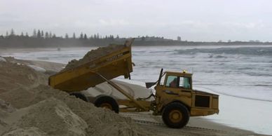 Traditional shoreline nourishment projects involve dumping rocks, gravel or sand to armour the beach, thus preventing erosion. The problem with this technique is that it totally ignores the natural state of a shoreline as a mix of aggregate, (rocks and sand) and organic material like tree trunks and wood fibre debris, leaves, kelp and eel grass. This organic material forms a matrix that traps sand and debris higher on the shoreline and builds the headland.